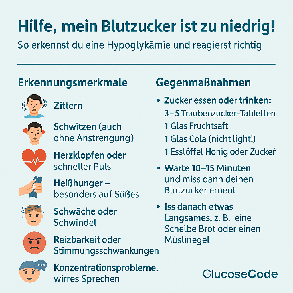Eine Hypoglykämie ist unangenehm – aber du kannst sie gut in den Griff bekommen, wenn du sie früh erkennst und schnell handelst.